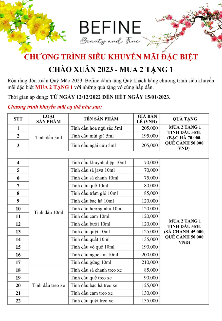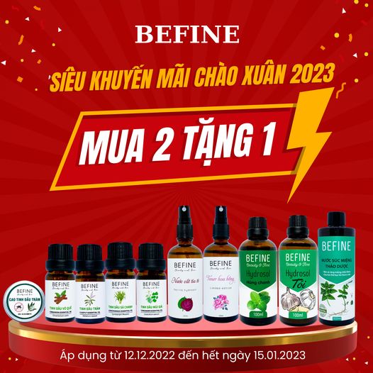 Rộn ràng đón xuân Quý Mão 2023, Befine dành tặng Quý khách hàng chương trình SIÊU KHUYẾN MÃI đặc biệt MUA 2 TẶNG 1 với những QUÀ TẶNG vô cùng hấp dẫn.