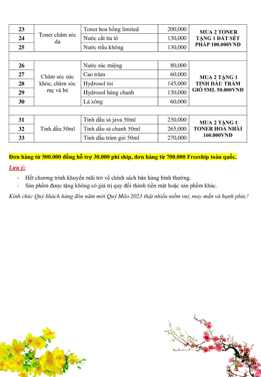 - Mua 2 sản phẩm chăm sóc sức khỏe TẶNG 1 tinh dầu Tràm Gió 5ml 50k.